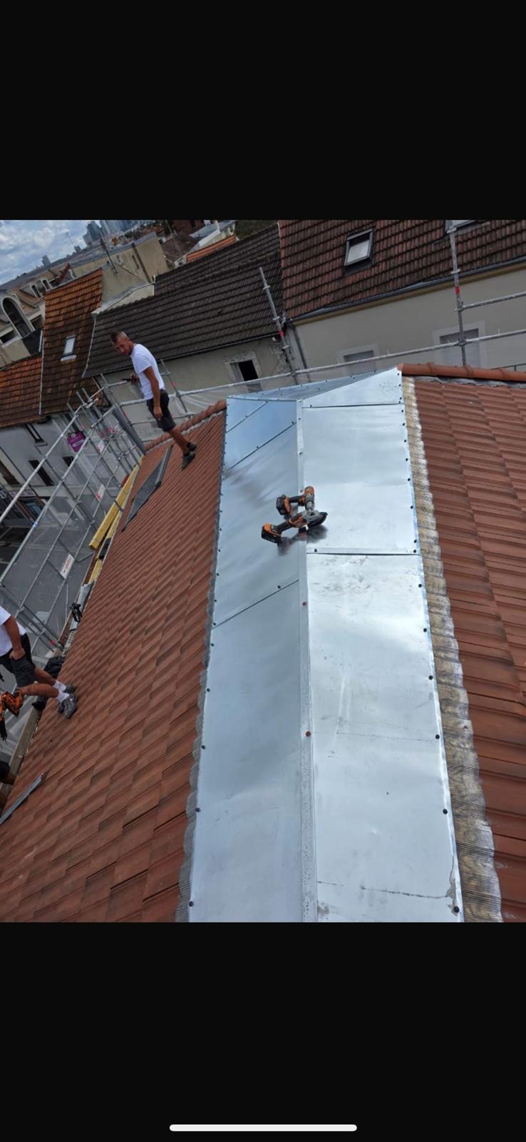 • Zinguerie : pose de gouttières, chéneaux, descentes, solins, noues, raccords